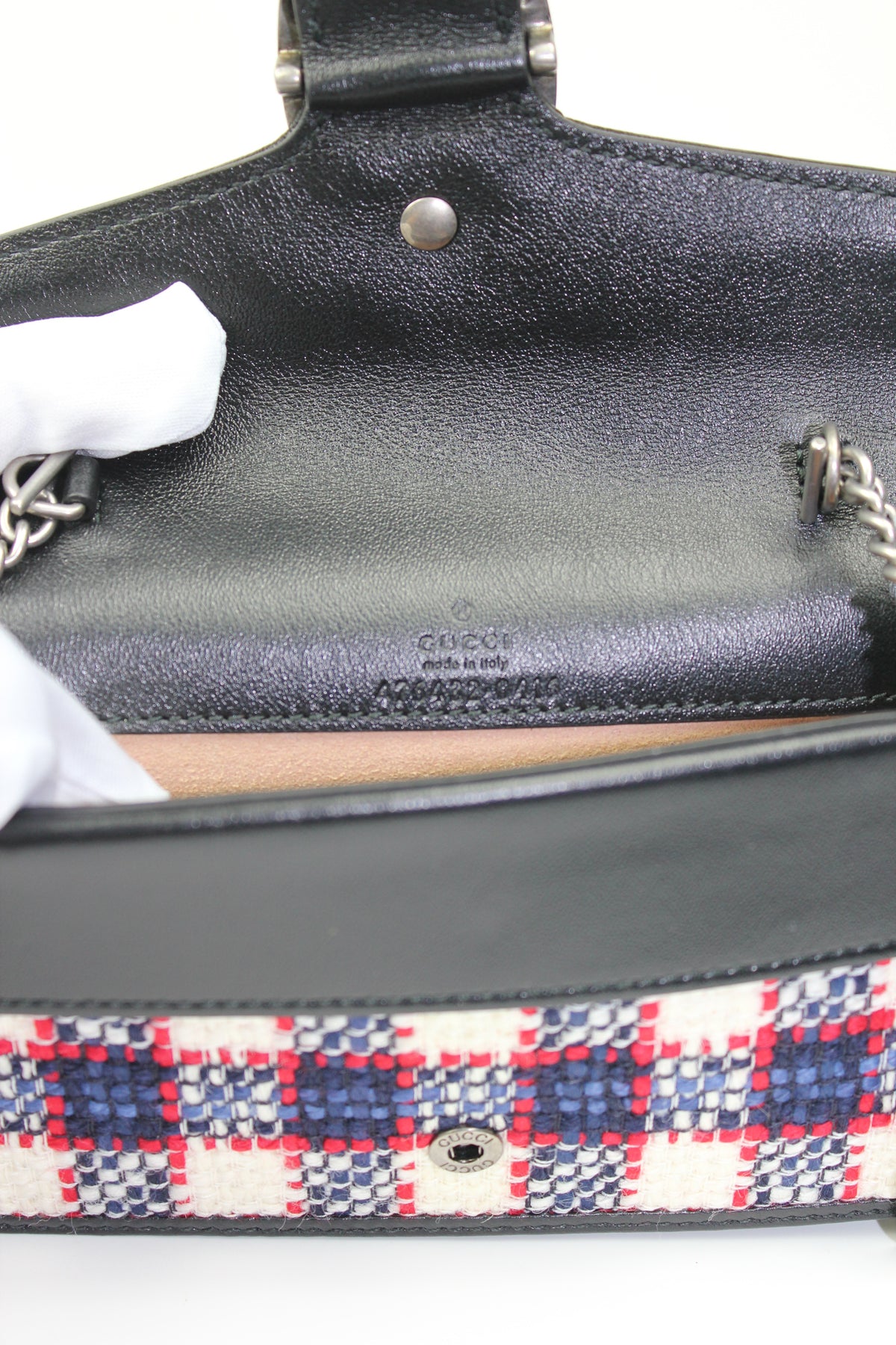 GUCCI Dyonisus extra mini tweed red, white, navy handbag