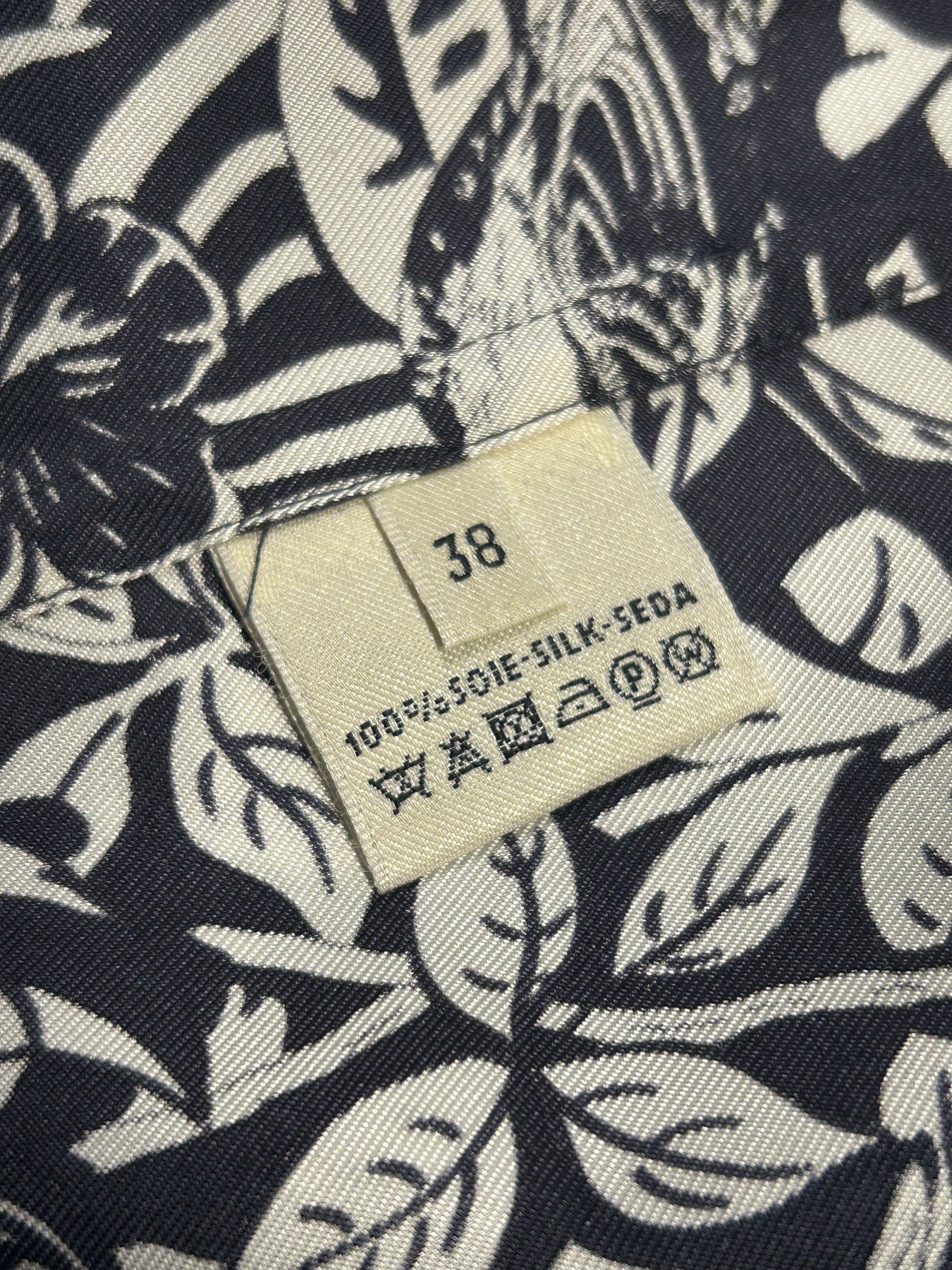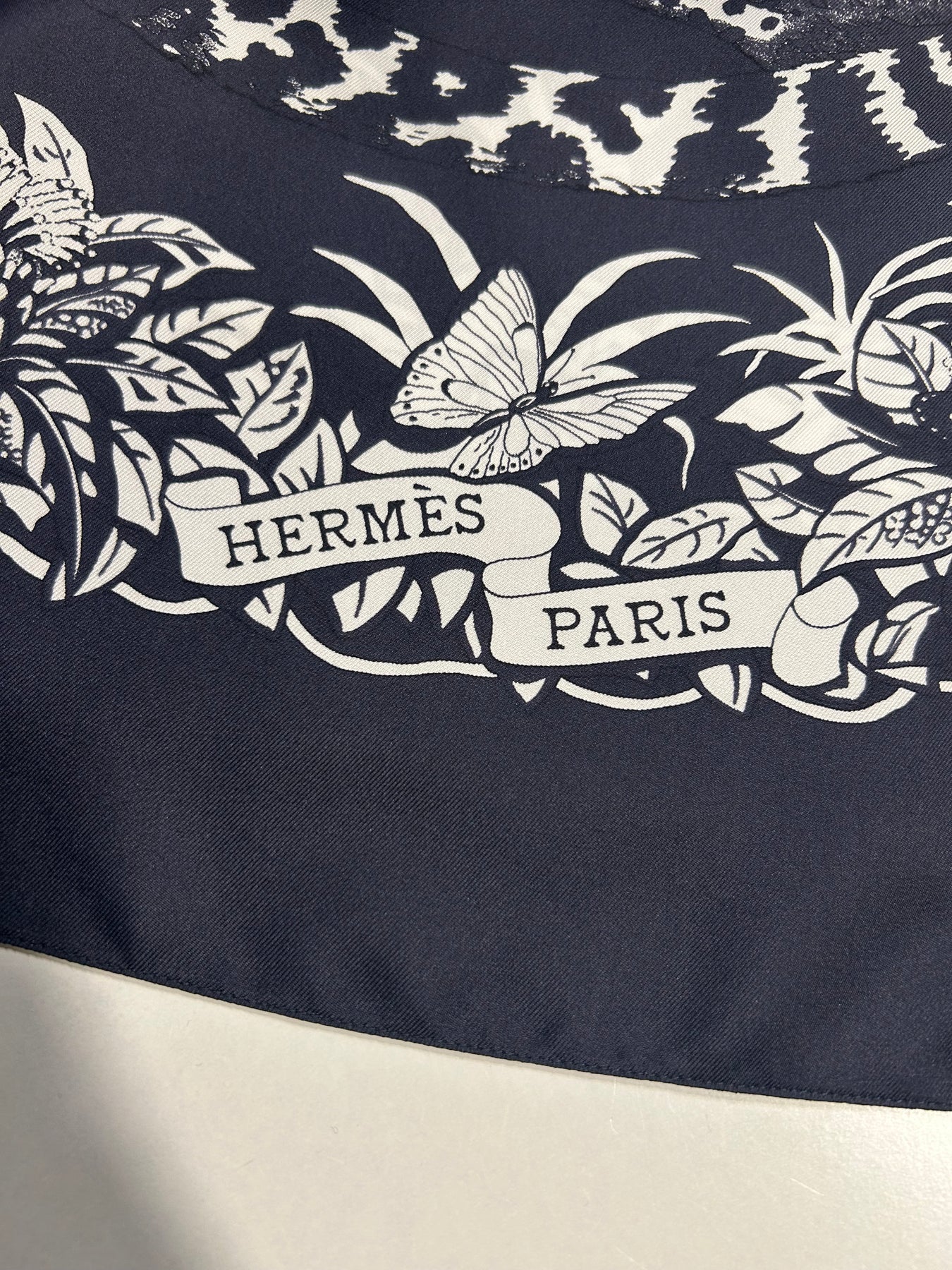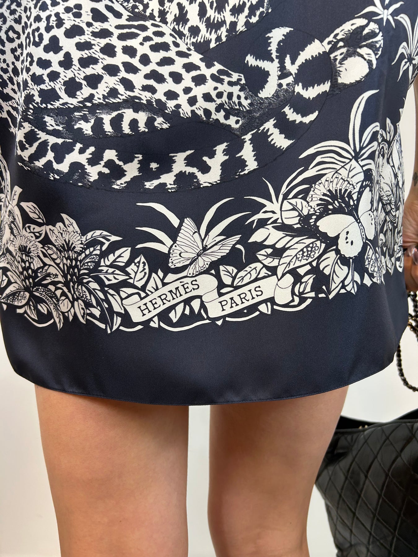 HERMES Jungle Love by artist Robert Dallet Navy White Silk Tunic Dress Size 38fr