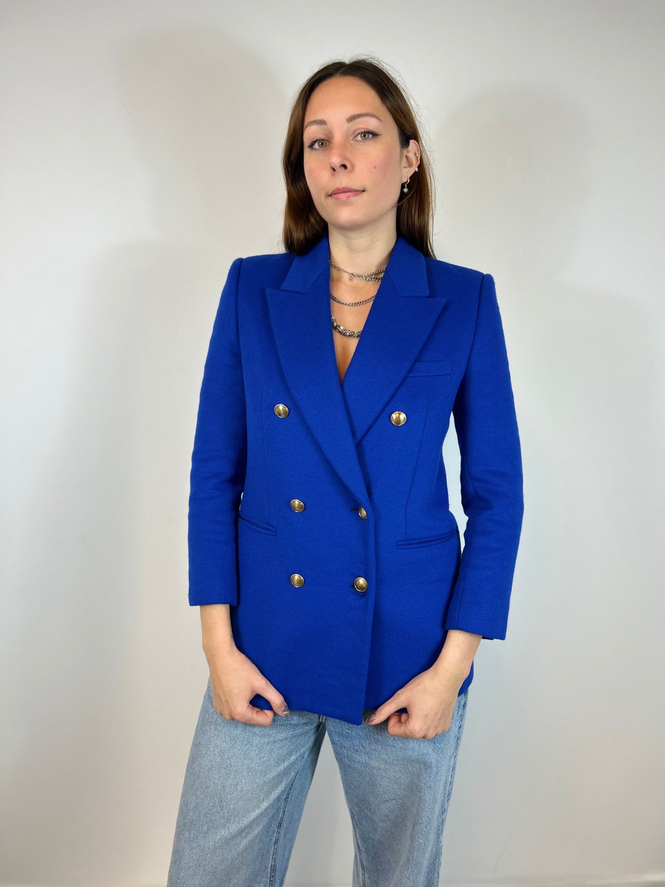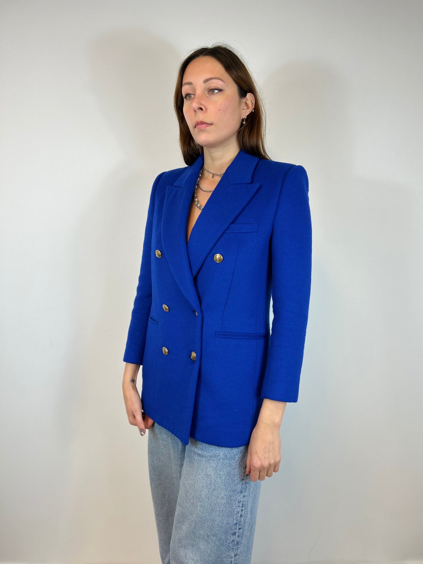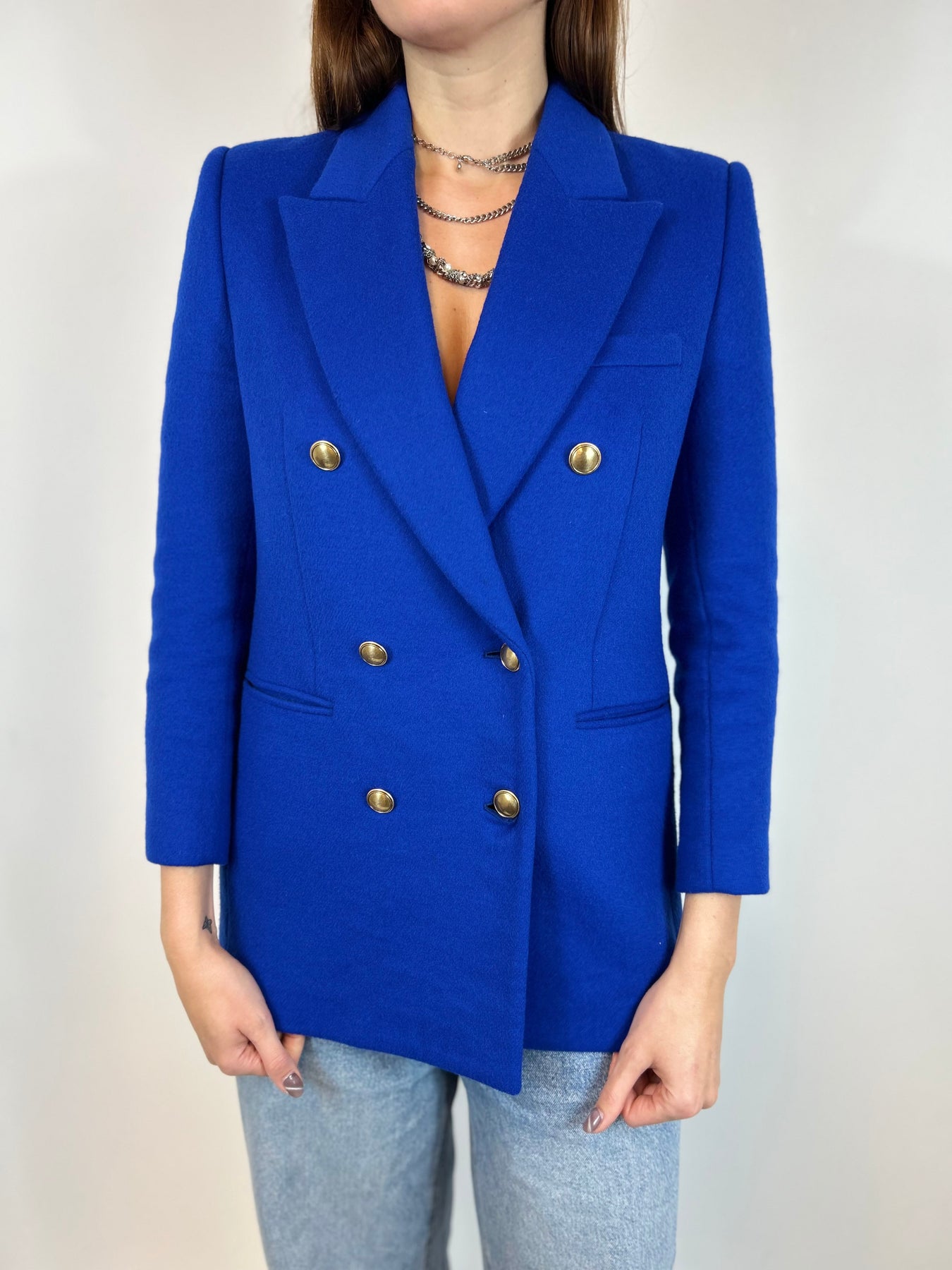 SAINT LAURENT F/W 2020 Majorelle Blue Wool Cashmere Double Breasted Blazer size 40