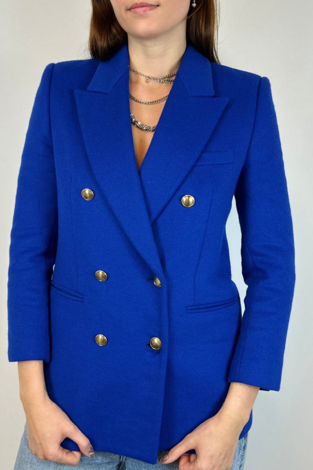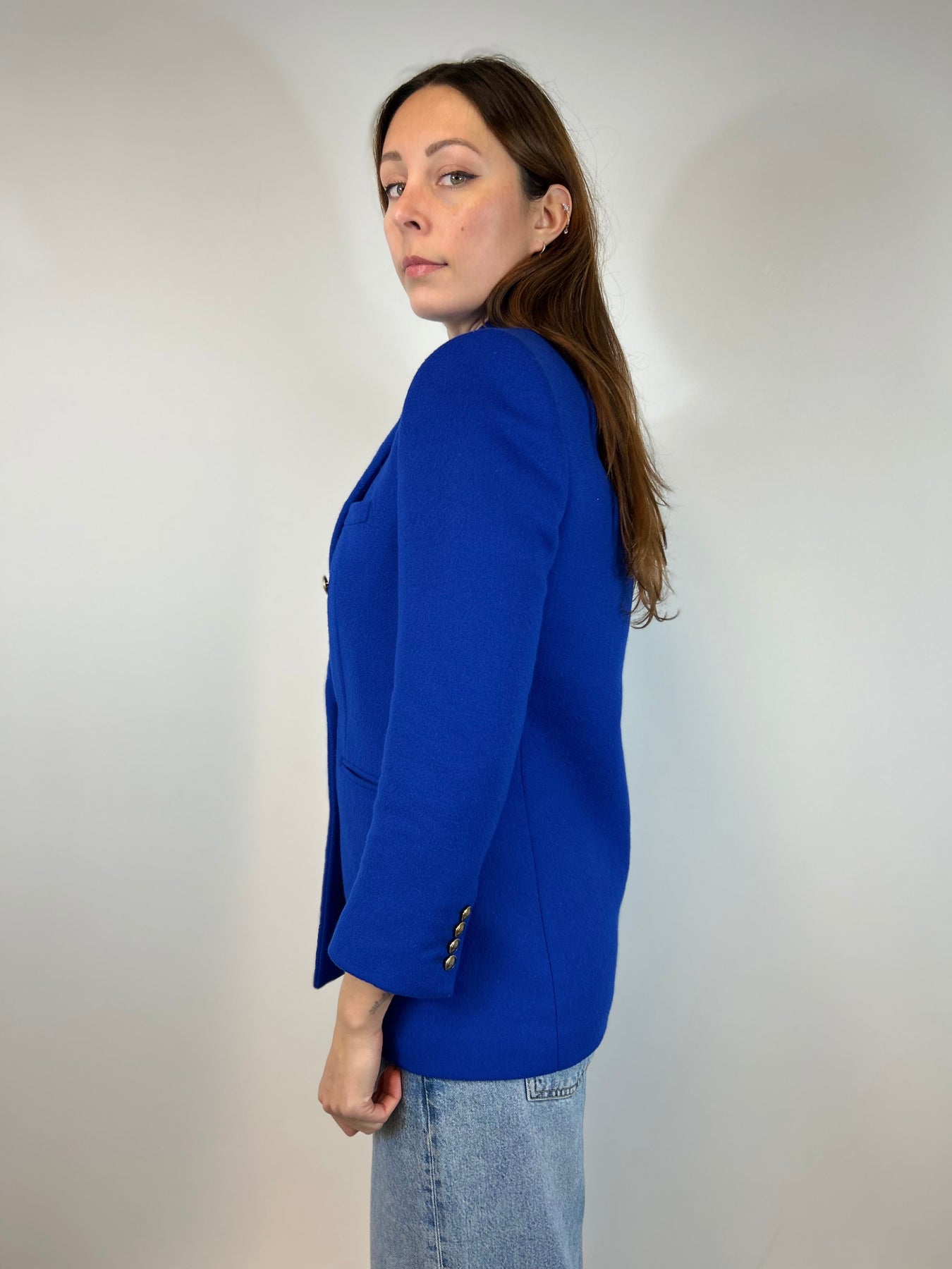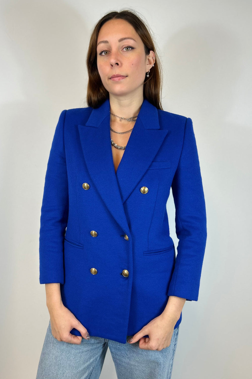 SAINT LAURENT F/W 2020 Majorelle Blue Wool Cashmere Double Breasted Blazer size 40
